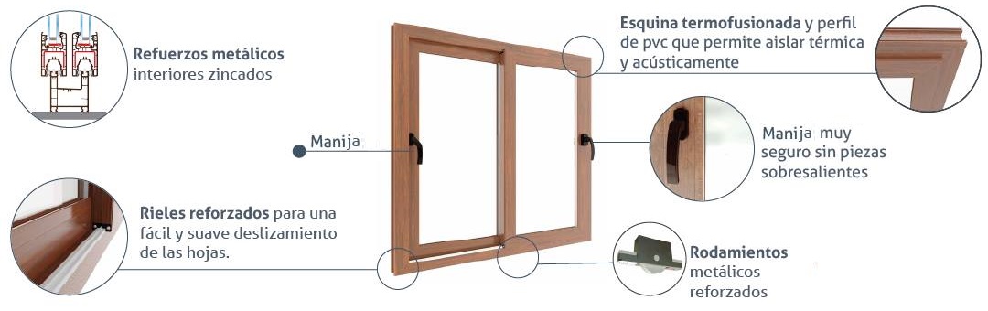 Todas nuestras ventanas están reforzadas con acero galvanizado, aplicado tanto en marcos como en hojas, incluyendo los laterales y uniones centrales, garantizando una durabilidad y protección excepcionales.
